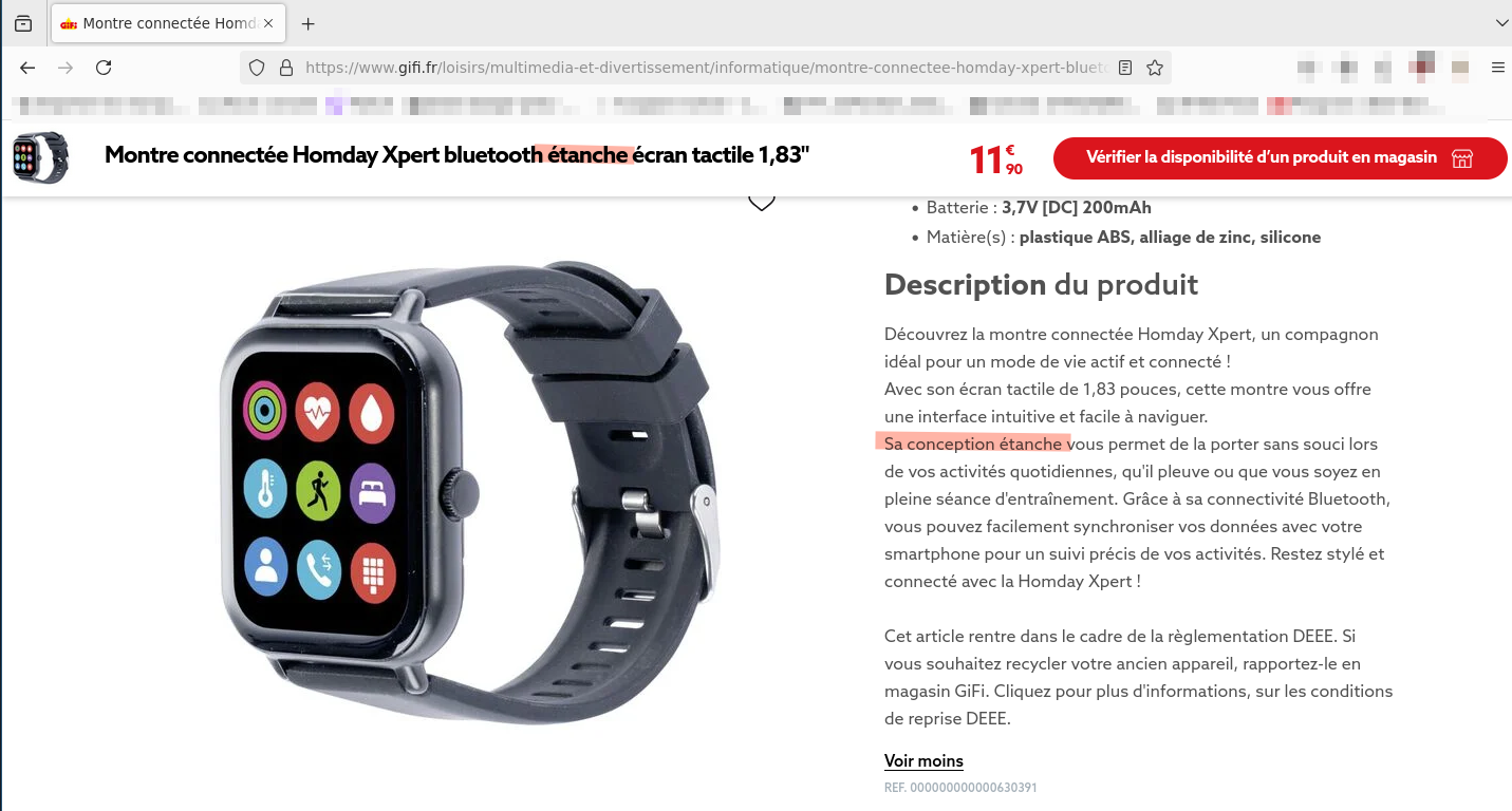 Je traînais à Gifi avant les fêtes de Noël lorsque je suis tombé sur une montre connectée à un peu plus de 10 euros. Elle m'a rappelée mes déboires avec certaines smartwatches trouvées sur AliExpress, à la fois dans sa forme et dans les fonctionnalités suggérées par les photos de cette dernière affichées sur la boîte. Je me suis donc délesté d'une dizaine d'euros et suis reparti avec, dans l'idée de l'analyser durant un live Twitch. Et je n'ai pas été déçu !