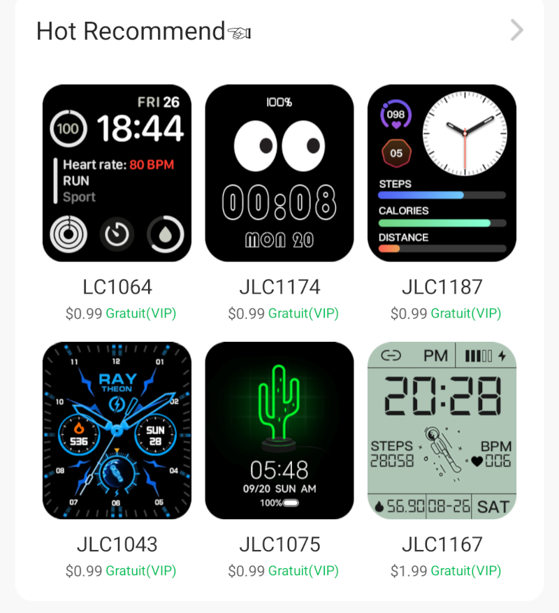 L'application propose toute une floppée de thèmes de cadrans (ou watch face) sur la montre, mais à ma grande surprise la plupart sont payants et impossible d'en installer via mon smartphone qui tourne sous /e/OS.